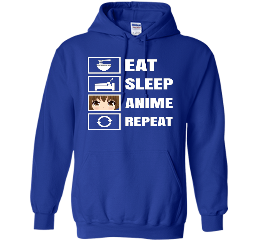 - Put your humor mode on with this amazing shirt that reads "Eat Sleep Anime Repeat" in English text with an image of a cute anime girl eyes! If you freaking love watching anime, funny English sayings, quotes, phrases, puns, jokes, this tshirt is for you! The best geeky outfit to reveal your love for anime! Comfortable & stylish to wear at work, parties, events or back to school!