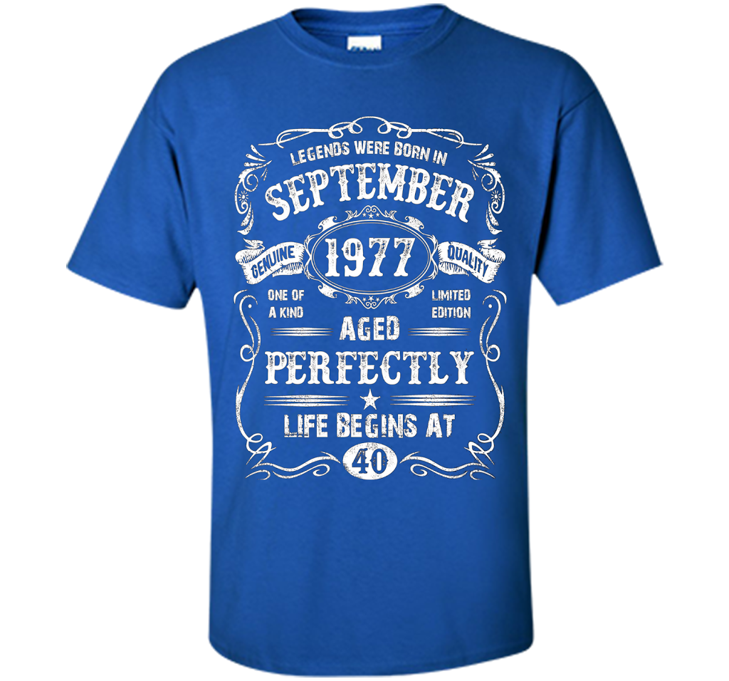 - Truly patriotic t-shirt gift idea for a man born in September 1977year and who loves t-shirts. Perfect gift for a senior man turning 40 years old and already becoming a Legend. Best gift for 40th b-day for men.