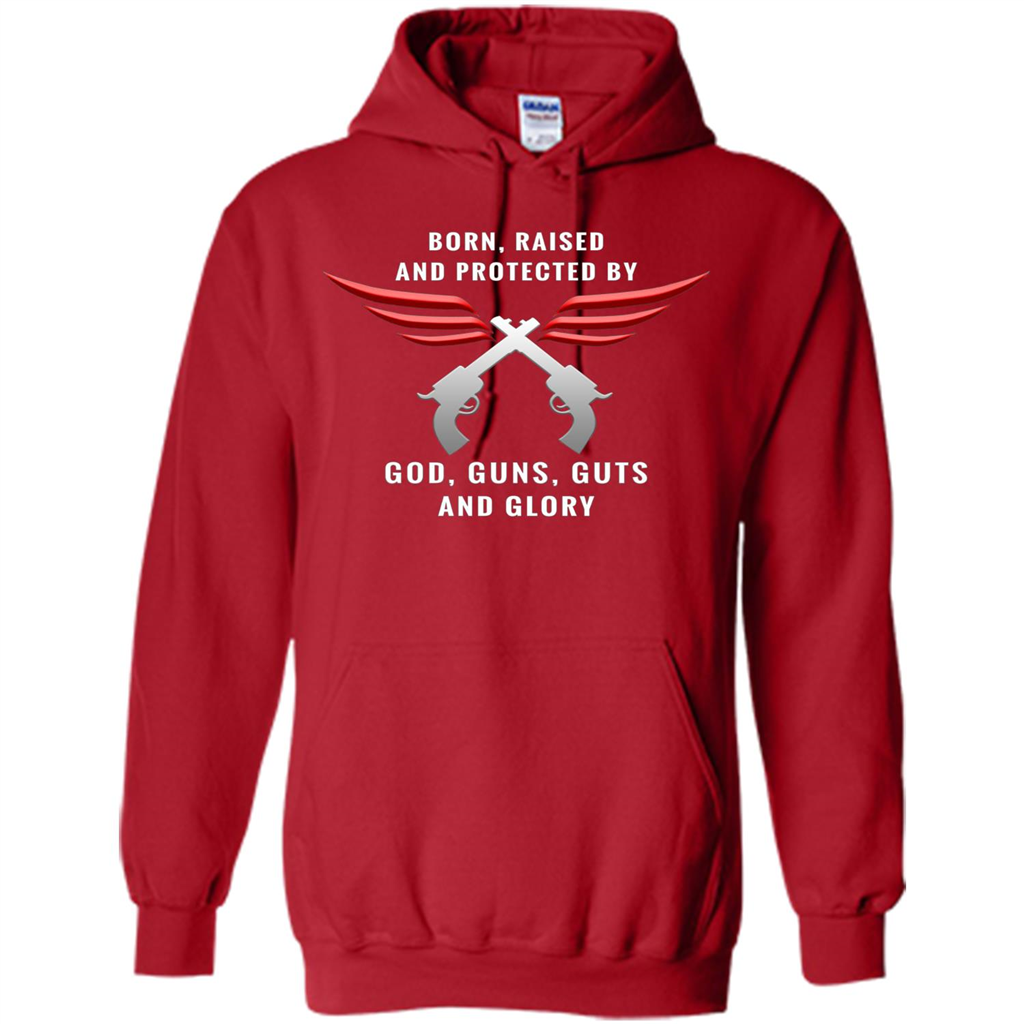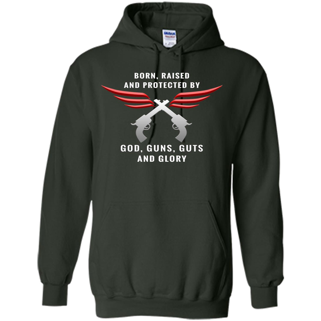 Order Born, Raised, Protected by God, Guns, Guts and Glory T-Shirt today for yourself or as a gift!