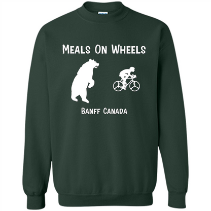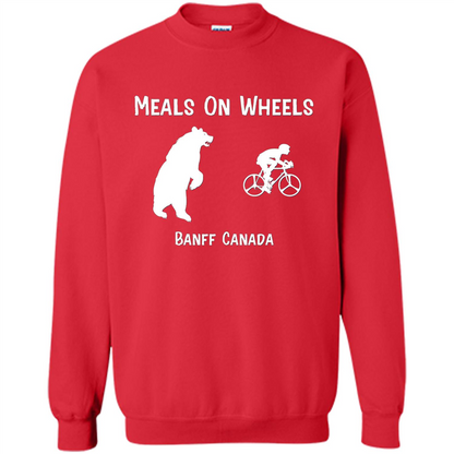 Order Funny Bear Chasing Bike Rider Meals On Wheels T-shirt today for yourself or as a gift!