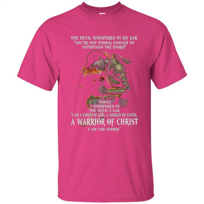 I Am A Child Of God A Woman Of Faith T-shirt Cute Gift T-shirt, The Devil Whispered In My Ear "You're Not Strong Enough To Withstand The Storm" To Day Whispered In The Devil's Ear "I Am A Child Of God A Woman Of Faith A Warrior Of Christ I Am The Storm"