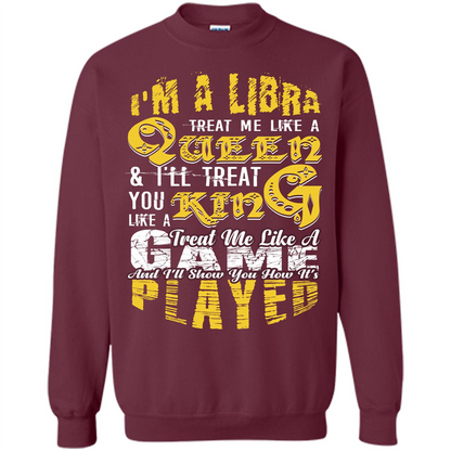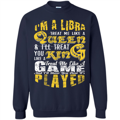 Libra T-shirt Im A Libra Treat Me Like A Queen Ill Treat You Like A King Treat Me Like A Game And Ill Show You How Its Played T-shirt, libra shirts, libra tshirts, shirts for libra, tshirts for libra, gift for october birthday, gift for september birthday, born in october shirts, born in september shirts, born in october tshirts, born in september tshirts, october birthday shirts, september birthday shirts, october birthday tshirts, september birthday tshirts