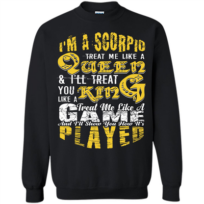 Scorpio T-shirt Im A Scorpio Treat Me Like A Queen Ill Treat You Like A King Treat Me Like A Game And Ill Show You How Its Played T-shirt, gift for october birthday, gift for november birthday, born in october shirts, born in november shirts, born in october tshirts, born in november tshirts, october birthday shirts, november birthday shirts, october birthday tshirts, november birthday tshirts, scorpio shirts, scorpio tshirts, shirts for scorpio, tshirts for scorpio